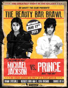 Saturday, August 17, 2013, doors at 8pm: Michael Jackson vs. Prince at the Beauty Bar