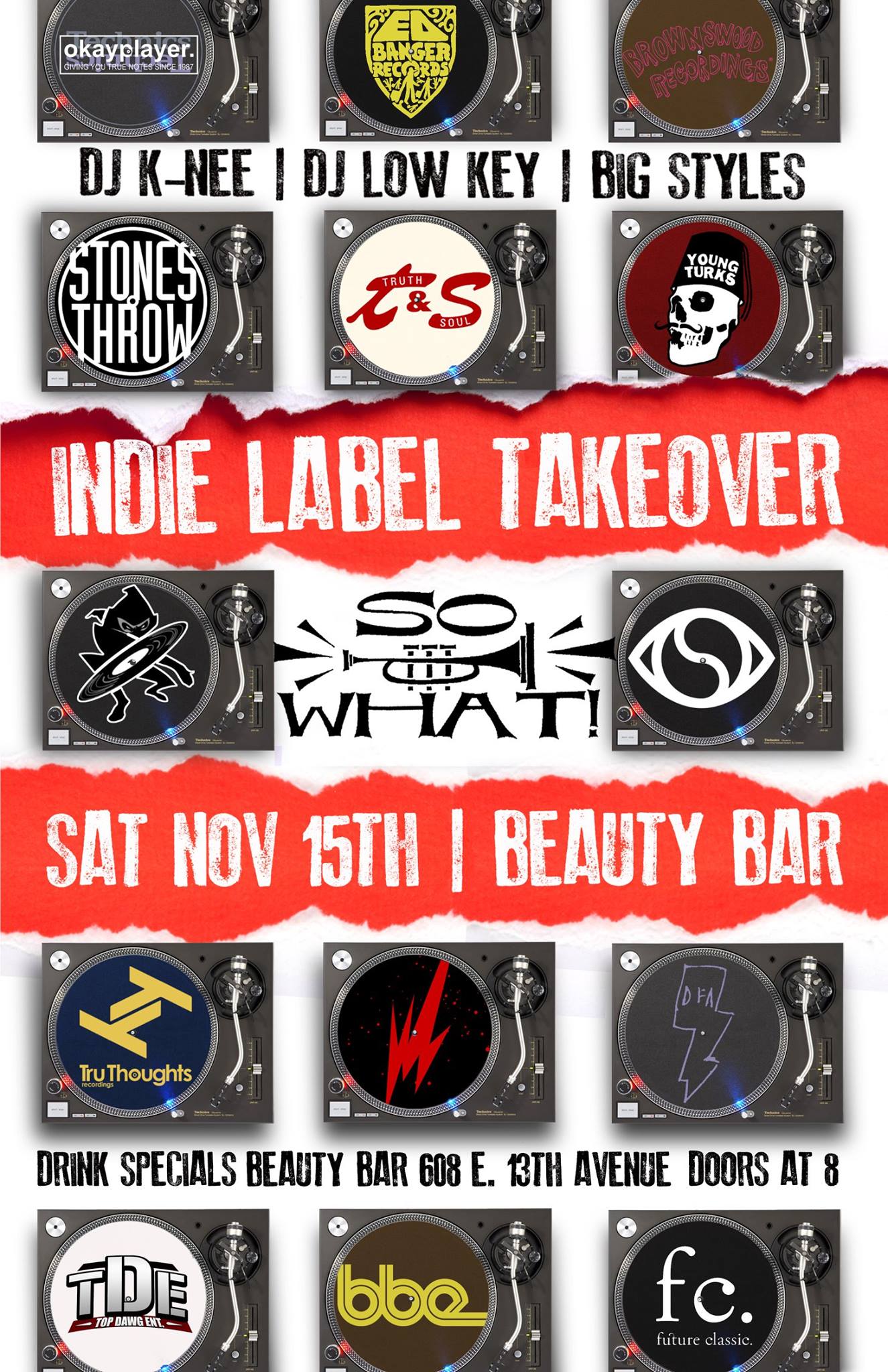 Saturday, November 15, 2014 @ 8pm: Indie Label Takeover at the Beauty Bar
