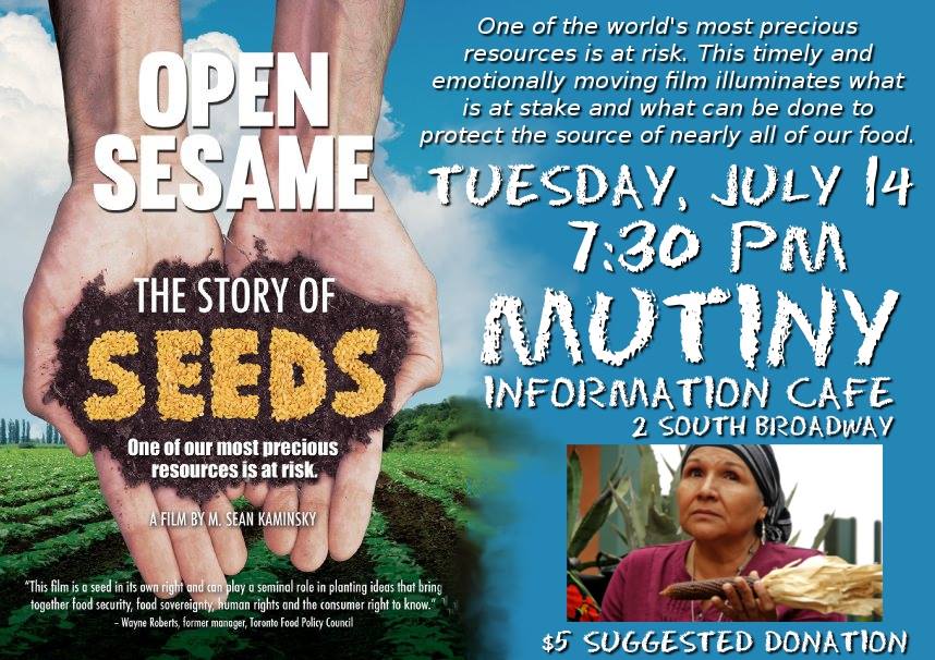 Tuesday, July 14, 2015 @ 7:30pm: Open Sesame: The Story of Seeds at the Mutiny Information Cafe