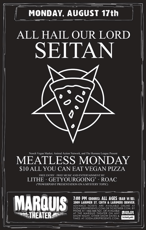 Monday, August 17, 2015, doors at 7pm: Meatless Monday Pizza Party at Marquis Pizza