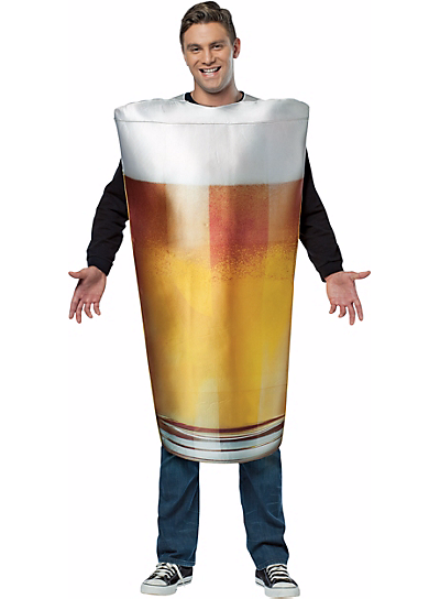 - Adult Get Real Beer Pint Costume. From the site: It’s been a long day, let’s get you a beer—costume, of course. If you’re looking for a refreshing costume idea, our Get Real Beer Pint Costume will quench your creative thirst. The tunic forms into a polyfoam glass of lager. Wear it to your Halloween party, and don’t worry, you won’t need your ID to enjoy this beverage! “Hey ladies, no ID necessary to drink this beer! And, yes, this is a tunic. It’s ‘creative’. Wait! Come back.”